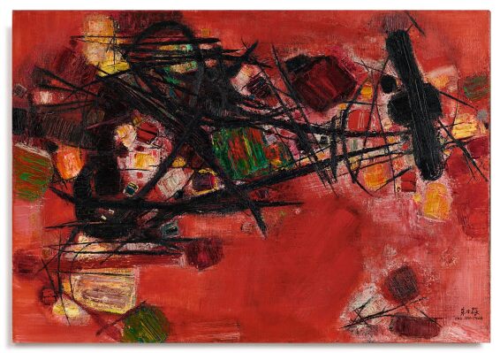 The Sublime Harmonies of Color In the canon of art history, Chu Teh-Chun’s abstraction is a grand epic poem. The artist devoted his entire life to uniting the East and the West. Using the canvas as a furnace, and oil colour as steel, he forged the magnificent bell whose intense and bright resonation was the sound of Asia. Chu Teh-Chun’s abstractionism is the crystallization of Asian and European civilization. His artistic concepts are traceable to Wu Dayu’s Dynamic Expressionism, while his brushwork contains the valour of Pan Tianshou, his poeticism the warmth of Lin Fengmian. Since leaving his homeland and travelling to the West in 1955, Chu Teh-Chun naturally adopted many of the artistic characteristics of the Western masters. In his work, one can see the symphonic compositions of Kandinsky, the orderly geometric shapes of Nicolas de Staël, the dynamic tension between light and dark of Rembrandt. These influences helped rouse and invigorate Chu Teh-Chun, such that as the artist immersed himself in the postwar movement of Abstract Expressionism in Paris, his deep-rooted Eastern sensibilities developed into the vast and prodigious spirit that grew to be recognized around the world. On the international auction market, acquiring one of Chu Teh-Chun’s abstract paintings from the 1960s is a rare enough occasion. But the opportunity of acquiring a masterpiece from the 1950s, over 100 cm in length, is one that has only emerged around ten times in the past thirty years. Rouge lourd et vert leger (Lot 1035), whether in size, composition, colour, or grace, clearly merits its status as a representative of Chu Teh-Chun’s early abstraction period. Indeed it is a testament to the Chinese-French master’s days at the vanguard.
